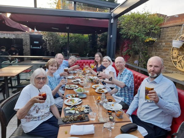 ‘On a warm evening last month, Nick led us on a fine country walk from the Church. We passed Finchley Nurseries, Darlands Lake and the Orange Tree pub. We rounded off the evening in Whetstone with a very enjoyable meal in the garden of the La Luna tapas restaurant.’ – June Nash